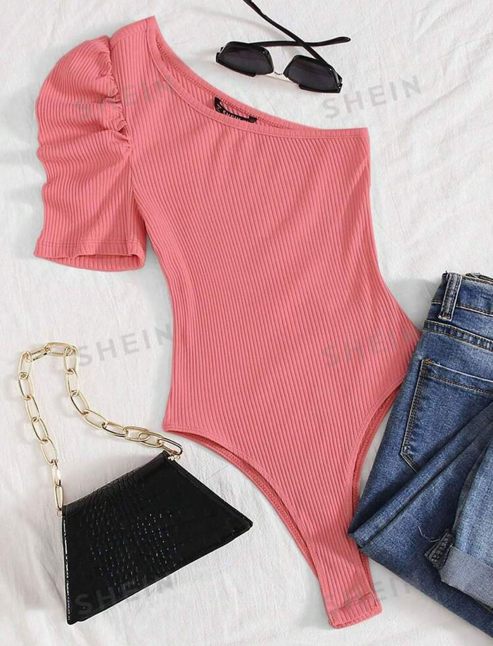Body de un hombro de manga farol tejido Talla M